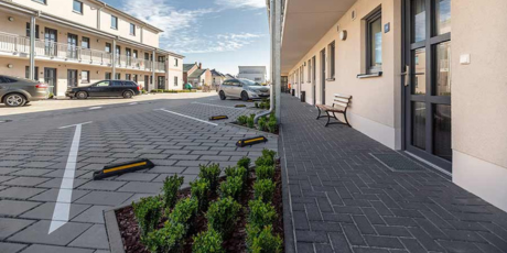 Das Parken ist zwischen den beiden Gebäuden Haus 1 & Haus 2 und auf dem Parkplatz auf der gegenüberliegenden Straßenseite erlaubt. Es gibt 3 öffentliche Ladepunkte für Elektrofahrzeuge.